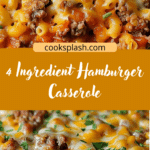 This 4 Ingredient Hamburger Casserole is a quick and comforting meal made with ground beef, pasta, cream of mushroom soup, and cheddar cheese. It’s a simple, budget-friendly dinner that’s perfect for busy nights.