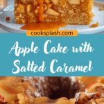 A warm, spiced apple cake swirled with soft apple pieces and topped with a silky salted caramel sauce — cozy, comforting, and perfect for fall or anytime you want a rustic, indulgent dessert.