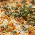 A warm, creamy, and slightly spicy dip made with artichoke hearts, cream cheese, jalapeños, and a golden panko topping, perfect for gatherings and snacking.