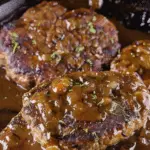 This Cracker Barrel-inspired hamburger steak features juicy beef patties smothered in rich onion gravy. A comforting, one-skillet meal that’s perfect for busy weeknights or hearty family dinners.