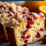 I keep coming back to this recipe because it turns out moist and flavorful every single time. I like how the orange zest and juice give the cake a fresh citrus taste without being overpowering. The sour cream makes the texture tender, while the cranberries balance the sweetness. The crumble topping adds contrast, and the glaze finishes it off with a light, zesty touch.