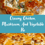 This Creamy Chicken, Mushroom, and Vegetable Pie with Flaky Pastry is a comforting and elegant dish featuring roasted chicken, savory vegetables, and a rich creamy sauce encased in a homemade buttery crust—perfect for cozy dinners or special occasions.