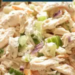 I store the chicken salad in an airtight container in the refrigerator for up to 3 to 4 days. Since it’s meant to be enjoyed cold, I don’t reheat it. I simply stir it before serving if it has been chilled for a while.