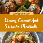 These creamy coconut and sriracha meatballs are juicy chicken meatballs simmered in a rich coconut milk sauce with a spicy-sweet kick from sriracha. A quick and comforting dish perfect for weeknight dinners.