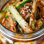 Cucumber Kimchi, also known as oi kimchi, is a quick and refreshing Korean side dish made with crisp cucumbers coated in a bold, spicy seasoning paste. Unlike traditional fermented kimchi, this version is ready in hours and delivers a crunchy, tangy, and slightly spicy flavor perfect for rice, grilled meats, or noodle dishes.