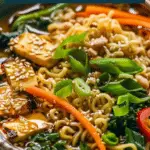 This vegan sesame ramen features a rich, savory broth made with sesame oil and coconut milk, paired with tender noodles and colorful vegetables. It’s a comforting, flexible, and easy-to-make meal perfect for any day of the week.