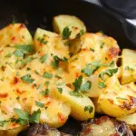 Garlic butter steak bites and potatoes is a quick one-skillet meal featuring tender seared steak cubes and crispy golden potatoes tossed with garlic, butter, and herbs for a rich and satisfying dinner.