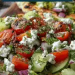 Fresh, creamy, and crunchy flatbreads layered with blended cottage cheese, feta, and a vibrant Greek salad. A quick, protein-packed meal ready in under 15 minutes.