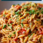 This Ground Beef Orzo with Tomato Cream Sauce is a comforting, one-pan meal made with tender orzo, savory ground beef, and a rich tomato cream sauce. It’s perfect for cozy dinners and easy enough for busy weeknights.