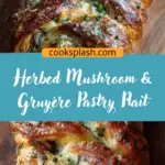 This Herbed Mushroom & Gruyère Pastry Plait is a savory, elegant dish featuring a rich mushroom filling wrapped in flaky puff pastry. Perfect as a main or appetizer, it’s ideal for cozy dinners or entertaining guests.