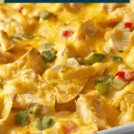 A creamy, cheesy Tex-Mex casserole layered with seasoned chicken, sautéed vegetables, tortilla strips, and melted cheddar, all baked to bubbly perfection without using canned soup.