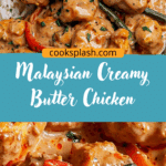 Malaysian Creamy Butter Chicken features crispy fried chicken tossed in a luscious, spicy butter sauce made with evaporated milk, curry leaves, and Thai chilies. It’s a rich, aromatic dish perfect for serving over rice or with warm bread.