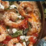 Mediterranean Shrimp & Feta is a quick, flavorful Mediterranean-inspired dish made with juicy shrimp, crumbled feta, cherry tomatoes, and fresh herbs. Cooked in olive oil and seasoned with lemon juice and spices, it’s a vibrant and balanced meal that’s both elegant and easy to prepare.