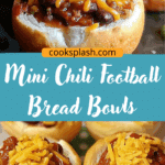 Mini Chili Football Bread Bowls are a fun and hearty game day dish featuring buttery toasted bread rolls filled with savory homemade chili and topped with cheese, sour cream, and green onions. They’re festive, flavorful, and perfect for sharing.