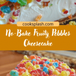 No-Bake Fruity Pebbles Cheesecake is a fun, vibrant dessert that combines creamy cheesecake with nostalgic cereal crunch. With its simple preparation and eye-catching appearance, it’s perfect for celebrations, family gatherings, or whenever you want a colorful treat that everyone will love. Prepare it ahead, let it chill, and enjoy every creamy, crunchy bite.