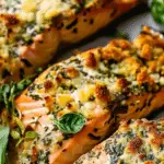 This Parmesan-Basil Air Fryer Salmon features juicy, tender fillets topped with a creamy, flavorful crust made of mayonnaise, fresh basil, and Parmesan cheese. Perfect for quick weeknight dinners, this recipe can be made in an air fryer or oven and is packed with comforting flavors.