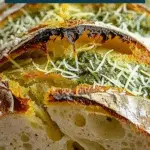 This pesto parmesan sourdough combines tangy sourdough with herbaceous pesto and nutty Parmesan cheese, resulting in a rustic artisan loaf that’s both flavorful and aromatic. It’s perfect for sandwiches, soups, or simply toasted with butter.