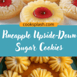 These Pineapple Upside-Down Sugar Cookies combine the charm of classic pineapple upside-down cake with buttery sugar cookies. Each cookie features caramelized pineapple and a cherry topping baked beneath a soft, tender cookie base for a tropical treat that’s as beautiful as it is delicious.