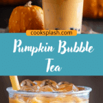 A creamy, autumnal bubble tea blending pumpkin puree, warm spices, and chewy tapioca pearls into a cozy, drinkable fall treat.