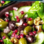 This Olive Salad with Pomegranate and Walnuts is a vibrant, no-cook dish that combines tangy olives, juicy pomegranate seeds, and crunchy walnuts. With a zesty lemon-olive oil dressing, it’s quick to prepare, visually stunning, and bursting with fresh Mediterranean flavor.