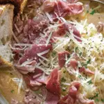 A creamy and hearty Reuben-inspired soup made with corned beef, sauerkraut, cabbage, and Swiss cheese simmered in a flavorful broth. This comforting dish delivers all the classic Reuben sandwich flavors in a warm bowl.