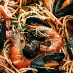 It’s loaded with tender scallops, juicy shrimp, and fresh mussels.