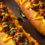 Sloppy Joe Corn Dogs are a fun mash-up of two classic comfort foods. Frozen corn dogs are split and stuffed with homemade sloppy Joe filling and melted cheddar cheese, creating a sweet, savory, and nostalgic dish perfect for casual dinners or gatherings.