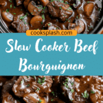 Slow Cooker Beef Bourguignon is a comforting French‑style stew featuring tender beef, mushrooms, carrots, onions, and herbs simmered in red wine and broth. It’s elegant enough for a special dinner yet simple to prepare ahead in your slow cooker.
