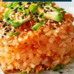 This Spicy Tuna Crispy Rice is a restaurant-quality appetizer I can make at home whenever I crave it. The combination of crunchy, golden sushi rice squares topped with creamy, spicy ahi tuna, avocado, and a slice of jalapeño is irresistible. It’s the perfect bite: crispy, creamy, spicy, and fresh all at once.