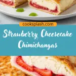 Strawberry Cheesecake Chimichangas are a quick and indulgent dessert made with a creamy cheesecake filling, fresh strawberries, and crispy cinnamon-sugar coated tortillas.