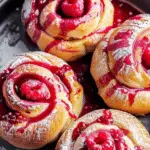 Sweet Raspberry Buns are soft, fluffy yeast rolls filled with bright raspberry jam and topped with a simple raspberry icing. These baked treats are like jelly donuts without the frying—perfect for breakfast, brunch, or dessert.
