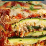 A rich and satisfying zucchini lasagna that swaps traditional noodles for firm, thin-sliced zucchini, layered with savory beef sauce and creamy ricotta without becoming watery—perfect for low-carb comfort food lovers.