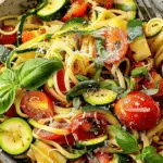 Tomato zucchini pasta is a light and flavorful dish featuring sautéed zucchini, cherry tomatoes, garlic, and herbs tossed with pasta and finished with parmesan and fresh basil. It’s quick, satisfying, and perfect for weeknight dinners.