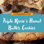 These Triple Reese’s Peanut Butter Cookies are thick, chewy, and bursting with Reese’s Pieces, peanut butter chips, and chopped mini Reese’s Cups — a dream for peanut butter and chocolate lovers.